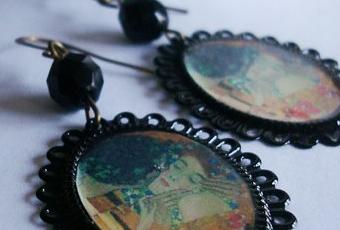 Pendientes realizados con marcos de metal lacados en negro, cristal checo facetado.