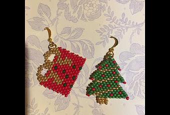 Pendientes Navideños con rocalla de alta calidad cosida a mano