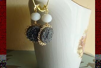 Pendientes de aire vintage realizados con filigranas,cabujones grises, cristal checo facetado y cierres antiguos.Precio, 12 euros + gastos de envío.Envía un email a [email protected] si quieres comprarlos o hacer cualquier consulta.