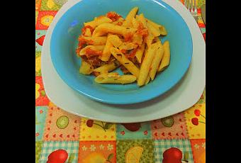 Receta de pasta vegetariana con mucho sabor gracias al tomate seco y a las especias.