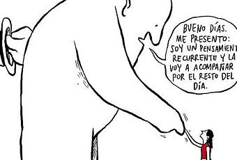Hay cosas que piensas de las que te deshaces enseguida, no crees que sean buenas, sospechas que te harán daño o que no dejarán que otras que se te puedan ocurrir fluyan y ocupen tus pensamientos. No tiene uno gobernanza sobre lo pensado. Por más que se desee, hay que claudicar, aceptar que irrumpan en nuestra cabeza cosas que no nos convienen. Son tan terribles que no es posible que puedas festejar que las venciste. Nada más pensar en ellas, vuelven. Incluso vuelven con más ahínco y permanecen más tiempo, causando un estropicio mayor. El pensamiento recurrente no tiene que ser malo en todas las ocasiones. Hay cosas que piensas que no tienen maldad alguna, pero hasta ésas, las livianas en peso o en hondura, desquician al más preparado. Fascina que una parte de ti escape a tu control, no se deje ordenar, no sucumba cuando la sancionas. Parece que existiese otro allá adentro y se entretuviese en perturbarnos, en desquiciarnos. Piensas en una novia que tuviste o en Epi y Blas o en los vampiros del cine mudo o en el cantante de Kiss o en tu madre vestida de lagarterana. Anoche pensé en Trump. Vino a mi cabeza su discurso en el atril de las Naciones Unidos. Ah horror de los horrores, todavía está ahí, no ha dejado de estar, yo creo que he soñado con él, aunque no pueda recordar ahora nada de lo soñado. Tendrá que venir otro pensamiento y desplazar al que ahora me molesta. Espero que sea feliz y no me altere mucho. Hay días que empiezan mal. Que el vuestro sea bonancible y no haya ningún pensamiento recurrente ingrato que lo derrote.