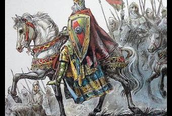 2. El poema oscurece lo que sucedió durante los próximos años. Rodrigo se fue, se unió a varios combatientes que prefirieron permanecer leales a él en lugar de obedecer al Rey Alfonso, y buscaron empleo como mercenarios. Fue rechazado por los condes de Barcelona, por lo que tomó el servicio bajo el rey musulmán de Zaragoza en 1082 y defendió el reino musulmán contra los ataques cristianos. Alfonso rompió con el sistema por el cual los musulmanes le pagaban lo que equivalía a tributo, y, en 1085, capturó Toledo, la antigua capital visigoda. Toda Europa estaba electrificada por las noticias de esta victoria y por las historias de la fabulosa riqueza que se había llevado junto con la ciudad. La pieza más famosa del botín fue la mesa de Salomón, que fue tallada en una sola gran esmeralda. Esto era pura fantasía, por supuesto,