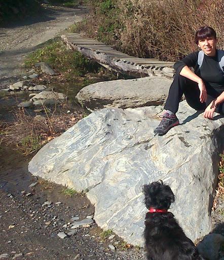 Al sol, y con mi perrita tras un buen paseo.
