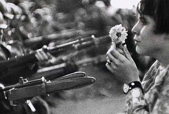 Marc Riboud, Muchacha ofreciendo una flor a los soldados, Washington, 1967
