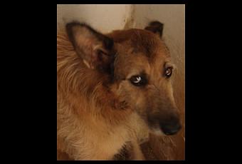 Lleva ya bastantes años en el refugio y el resto de compañeros de jaula siguen sin aceptarlo, así es que vive siempre escondido y se mantiene alerta.