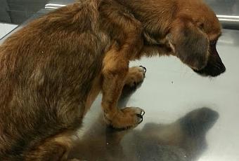 PEPO SOLO TIENE 6 MESES Y SU ESTADO ES TERRIBLE , ESTA DESNUTRIDO Y DESHIDRATADO Y LUCHA POR SALVARSE.