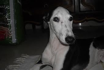 Malu es una galguita que me han tirado por la valla de mi casa. Viene con un problema en las patas, la he llevado al veterinario y le han puesto un tratamiento porque no saben si es de desnutrición o es erliquia Tiene las articulaciones delanteras muy inflamadas y no anda bien. Esperemos que en la semana de tratamiento mejore. Por favor ayudadme a difundirla.