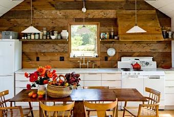 Esta pequeña casita de campo , no tiene grandes dimensiones pero no le falta de nada y resulta de lo mas acogedora.Se construyó en los años 40 y hace unos años fue restaurada completamente. Se utilizó madera reciclada en toda la casa pintándose de blanco por dentro y por fuera.El tejado viejo se sustituyo por musgo verde que hace de aislante y visualmente queda mas bonito o por lo menos diferente no?Me parece que esta llena de encanto.