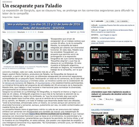 En estos días salen a la calle la exposición que ha estado durante dos meses en la sala de exposiciones la Alhóndiga en La ciudad de Segovia, Juan Carlos Garguiulo y Paladio Arte, pioneros en visibilidad el arte exponiéndolo en los comercios de de la ciudad.