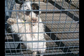 LOS DUEÑOS DE ESTE PEQUEÑO NO HAN TENIDO NINGUNA COMPASION Y LOS HAN DEJADO ABANDONADO EN ESTA JAULA DE LA PERRERA.