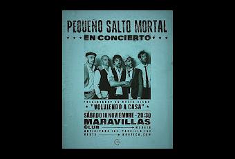 Pequeño Salto Mortal anuncian una gran fecha en Madrid, una fecha con sabor a presentación de disco, una fecha en la Maravillas Club. Pequeño Salto Mortal nos presenta un disco llamado Volviendo a casa, este trabajo se presentará en la Sala Maravillas Club.Tras el verano podremos ver a Pequeño salto mortal desde el escenario de la Maravillas Club, un show en la capital donde presentarán su nuevo disco. Un trabajo lleno de detalles, de matices y de apuestas sonoras. Volviendo a casa es el nombre de este nuevo trabajo que el 18/11 será presentado en Madrid como se merece.