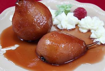 3- Despresurizar, y reducir un poco el almíbar, dando vuelta a las peras para que cojan sabor y se "tiñan" por igual, destapado en menú freír.