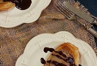 Rellenar cada hueco de las peras con la mezcla y colocar cada mitad con el relleno hacia abajo encima de la masa de hojaldre que previamente pintaremos con huevo batido.