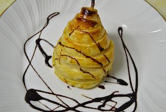 Así que propongo este postre que puede ser también genial para san valentín y sorprender a vuestra pareja, vamos con la receta.Ingredientes:Pera conferenciaUna piel de limónUna rama de canelaAguaUna lamina de hojaldreUn huevoSirope de chocolatePreparación:Ponemos una olla con agua, la cascara de limón y la rama de canela al fuego,Mientras pelamos las peras dejando el rabito y cortamos la parte del culo (perdón por la expresión) un poquito que quede plana de manera que luego se aguanten de pie y no se caigan de lado.Las metemos en la olla y las dejaremos cocer hasta que estén cocida pero al punto que no se nos rompan, sacamos con cuidado y dejamos escurrir bien.