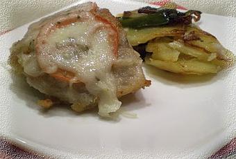 Cuando las patatas estén hechas, las colocamos en una fuente para horno, a modo de cama para el pescado que colocaremos encima.Troceamos en rodajas el tomate que colocaremos sobre el pescado, espoloreamos parmesano e hierbas y horneamos a 200ºc 10 minutos, pasado ese tiempo añadimos el queso para fundir y otro poco de parmesano y gratinamos 5 minutos.