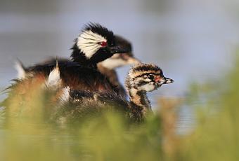 Macá común (Rollandia rolland) con pichón