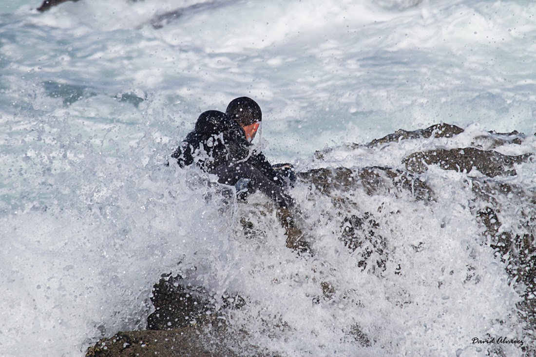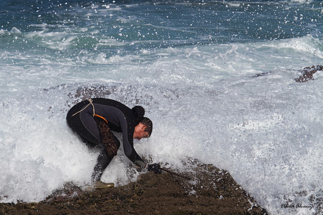 Con un ojo en la piedra y otro en las olas que rompen sobre ella, los percebeiros van saltando de roca en roca cavando los piños y guardándolos en una red colgada en su cintura. Conocen esas rocas desde siempre, son las mismas que sus padres y abuelos ya cavaban entes de que ellos nacieran. Entienden cómo se mueve la mar entre ellas y cómo y por donde pasan las olas entre las grietas y los canales. Saben perfectamente donde colocarse, les va la vida en ello.
