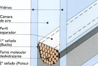 La sustitución de vidrios simples por dobles, opción recomendada, implica una disminución de las pérdidas de energía de hasta un 50%. Esto es debido a la capacidad aislante de la cámara interpuesta, que corta la transferencia directa de la energía térmica.