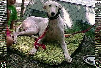 Galgo blanco, se llama Zar. Terrassa ( Barcelona)
