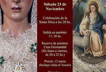 El próximo sábado 23 de noviembre la Hermandad de la Divina Pastora de Cantillana peregrinará, con motivo del Año Jubilar Macareno, a la Basílica de la Esperanza Macarena, donde se celebrará la Santa Misa a las 8 de la tarde. Para ello, la hermandad pone a disposición de los hermanos y devotos, plazas de autobús para asistir a este acto. La reserva de asientos se podrá hacer en la Casa Hermandad, de lunes a viernes de 8 a 10 de la noche, al precio de 12 euros, incluyéndose en el mismo la visita al Tesoro de la Macarena.