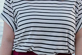 El pasado domingo, nos tomamos el final de la tarde para dar un paseo por nuestro nuevo pueblo, conocer un poco sus calles, y comernos un buen helado junto al mar...y en fin, esas cositas que apetecen un montón los domingos por la tarde. Como ya llevaba días a mil, con moño y zapatillas a todas horas, me apetecía arreglarme un poquito y aposté por la combinación de falda granate con camiseta a rallas, unos taconcitos y a disfrutar. ¿Que os parece?