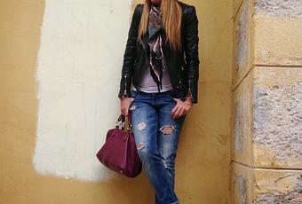 Perfecto / Jacket : ZARA ( SIMILAR AQUÍ ) Jeans, Anillos / Ring : ZARA Camiseta / T-Shirt, Boina / : MASSIMO DUTTI Pañuelo : BDBA Zapatillas / Shoes : ALL STAR CONVERSE Bolso / Bag : BIMBA & LOLA Pulseras / Bracelet : TORQUES COMPLEMENTOS PIRÁMIDES . COMPRAR AQUÍ y PINCHOS.. COMPRAR AQUÍ