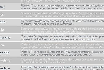 Como ya se ha mencionado, existen profesiones que gozan de una alta demanda en la mayoría de regiones de nuestro país como los perfiles sanitarios, profesionales del sector IT, técnicos/as de mantenimiento, personal de hostelería, operarios/as (industriales, agrarios) o manipuladores/as de alimentos.