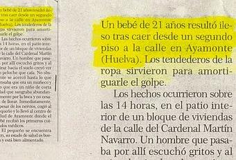 Y hablando de años, de eso trata precisamente la noticia de hoy, de un bebé de nada más y nada menos que 21 años. Vamos, un bebé ya crecidito y criado. Supongo que el periodista quería poner 21 meses, pero en lugar de meses puso años y así la cosa cambia mucho... Por cierto, yo quiero un tendedor de la ropa tan resistente como este, porque anda que amortiguar el golpe de una criatura de 21 años...