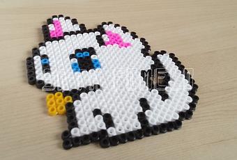 Dicho esto....vamos al post de hoy. Todos sabréis ya a estas alturas que tengo dos gatitas: Luna y Perla. Luna, romanilla, de color ceniza, un poco arisca...y Perla, blanca de ojos azules y muy cariñosa. Pyssla me ha vuelto a inspirar...buscando en la web cosillas para hacer...topé con un patrón de un gatito y a mi cabeza vino Perlilla.