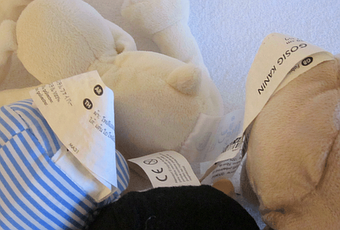Alguien se aventura, se admiten apuestas!!... Bueno, o más bien ¿qué significa?, lo que es creo que está bastante claro (peluches del revés)... Pues el punto de vista de nuestra nena.. Le encanta ponerse los peluches así, sobre la cabeza más concretamente.. ¿El motivo?, vais a flipar, lo que más le gusta es coger las etiquetas y quedarse mirando fijamente para ellas, cuando no se las lleva a la boca (como no!! cuando acabará esta "fase oral"!!).... ¿Ya podrá leer su contenido?, je je... A mi me resulta curiosísimo, no se si es una manía de nuestra nena o si es normal en los bebés este comportamiento.. ¿A alguien le ha pasado esto?...