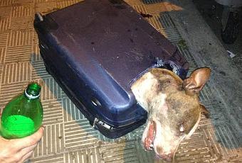 Una perra, de raza pitbull, fue localizada tirada en un contenedor de basura dentro de una maleta de viaje de reducido tamaño.