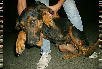 Mirar lo que ha tenido que pasar esta pobre perrita, tirada al lado de las vias del tren con un cachorrito de unos 6 meses. Hace menos de una hora me han llamado diciendome que hay dos perros al lado de las vias del tren y que uno no se puede levantar que esta tirada que le pasa algo que cree que tiene la pata partida, una amiga y yo con linternas en mano hemos ido y nos encontramos con esto, un cachorro de unos 6 ó 7 meses de talla chica acostado al lado de esta perrita con su cabecita encima de ella, la perrita esta tan desnutrida que no tiene fuerza ni para levantase.