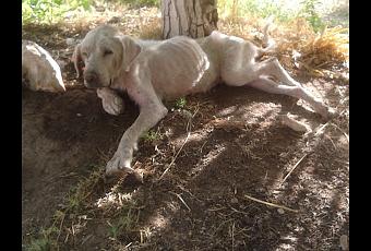 PERRITA EN UN ESTADO LAMENTABLE, DEBAJO DE UN ÁRBOL EN ILLORA (GRANADA). ALGUIEN PUEDE HACER ALGO, POR FAVOR? ESTOY LEJOS, Y LAS PROTECTORAS NO CONTESTAN A NINGÚN TELF. SI ALGUIEN PUEDE AYUDARLA, POR FAVOR,
