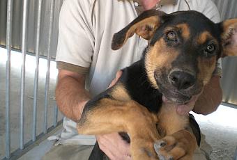1- mestiza pastor aleman: hembrita de unos 3.5-4 meses y unos 9 kg....pensamos que alcanzará un tamaño de adulta de unos 25 kg probablemente....es muy simpatica, extrovertida y juguetona....no para quieta...y quiere salir de alli a toda costa...!