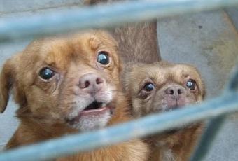 Perritos tristisimos en una jaula. Perrerta de Mairena. (Sevilla)