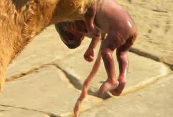 A través de las redes sociales se ha compartido la imagen de una perra que carga un recién nacido el cual aparentemente habría sido abandonado por su madre.