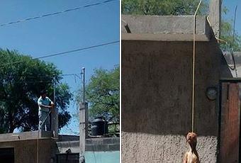 En las fotos se puede apreciar como la persona colgó de una cuerda al animal desde una azotea.