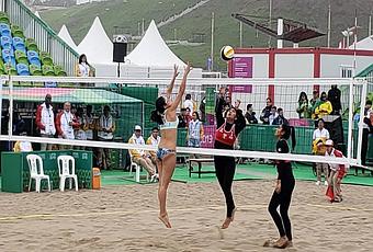 El equipo peruano de voleibol de playa debutó con la victoria en los Juegos Panamericanos de 2019. El dúo femenino, compuesto por Lisbeth Allca y Alexandra Mendoza, venció a El Salvador 2-0 en el primer juego del Grupo D.
