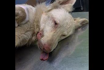 No tiene nombre y ni sabemos como llamarle, solo deseamos que viva. Andaba por la carretera de Barquilla de Pinares (otro reducto del embrutecimiento humano que no ha evolucionado) nosotros pasabamos en direccion a otro pueblo y alli estaba el, de un lado a otro dando tumbos, su pata a rastras, su cabecita agachada tocando la carretera como buscando donde caer para morir, dimos la vuelta le seguimos a distancia ya que su panico es fuera de lo comun, se echo al suelo y con una correa pudimos pasarsela por el cuello, fueron momentos duros ya que el lloraba y daba alaridos de terror. Tiraba con sus pocas fuerzas, durisimo de verdad unos momentos durisimos, asi le metimos en la furgoneta y asi pudimos traerle ante la mirada de un tipo del pueblo que pensamos debia ser el "dueño" por los gestos y datos que nos daba el tipo, se reia como si estuviera viendo una funcion de circo, con los tipicos -"pero si es una mierda de perro, si esta viejo y sarnoso...". Sin contestar ignorando al ignorante nos montamos y nos fuimos. El sin nombre esta mal muy mal, esta ingresado, lo logico de su abandono: anemia, deshidratacion, desnutricion severa, herida infectada en el codo, infeccion en los ojos, en sus partes, infectacion por garrapatas, pero lo peor ha sido descubrir su boca, es toda ella una llaga, llagas enormes que parece ser producidas por haberle tenido un palo en la boca, al ir mordiendo se ha astillado y se ha clavado esas astillas, el palo lo ponen del paladar a la parte de la dentadura de abajo asi se mueren, este no sabemos como se ha salvado de esa muerte con esas secuelas en su boca que le impiden hasta beber.