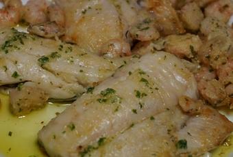 Pescado con gambas al ajillo