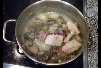 3. Se añaden las almejas y se remueve a fuego lento.