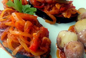 - A continuación, incorporamos el pescado a la sartén con el encebollado, apagamos el fuego y lo dejamos reposar 15 minutos para que el pescado coja sabor.