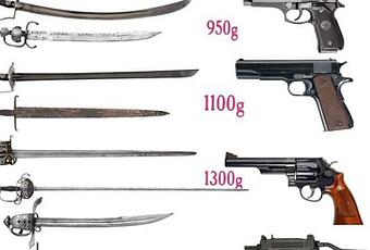 Esta imagen esta sacada de la cuenta de Twitter de Ángela, que además de rolera es practicante de esgrima y debería acabar con el mito de que las espadas eran armas pesadas y había que estar como un toro para esgrimirlas, por lo que era tema solo para hombres mazados. Al lado de cada espada/arma de filo, ha puesto su equivalente en peso en forma de una arma de fuego actual...arma sin munición, como bien indica en el hilo donde lo he sacado, según el tipo de munición, cantidad de munición y tipo de cargador en las armas que pueden llevarlo (Variable importante, ya que según el cargador, se alteran las dos primeras variables y se puede alterar la tercera: La de equilibrio), por lo que las armas de fuego acaban siendo mas pesadas en la gran mayoría de las veces que la mas pesada de las espadas.Por eso las fábricas de armas están todo el rato experimentando con toda clase de materiales, como polímeros, plásticos, aleaciones, etc para entre otras cosas, hacerlas mas ligeras.