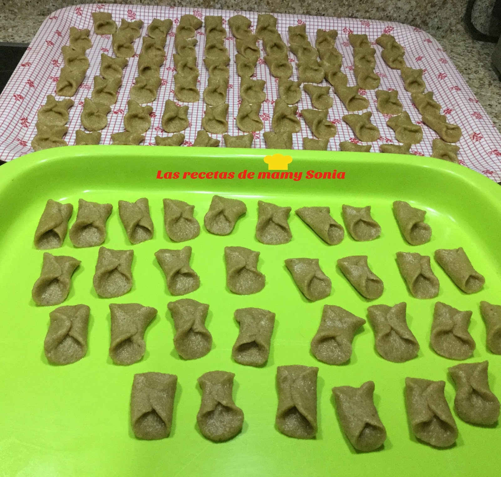- Acto seguido vamos cogiendo porciones hacemos una bolita, aplanamosdoblamos de afuera hacia dentro tal cual os muestro en la foto y sellamoscon un poco de agua.