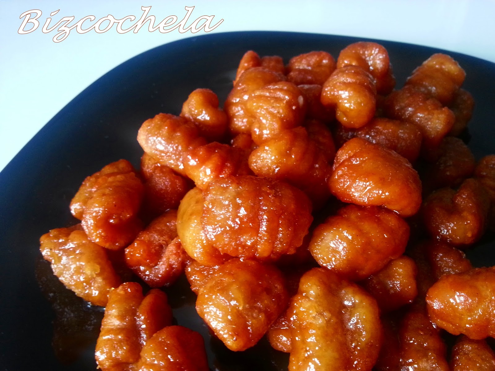 Y cuando empiece a hervir, volvemos a pasar los pestiños por esta miel pura, y vamos colocando en una fuente.