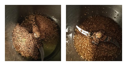 Colamos el aceite y reservamos. Trituramos el ajonjolí, la matalahuga y las almendras 30 Seg, Vel Progresiva 5, 7, 10