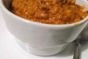 - Se añade aceite y vamos batiendo hasta conseguir una pasta mas o menos fluida dependiendo si añadimos mas o menos aceite, al gusto.