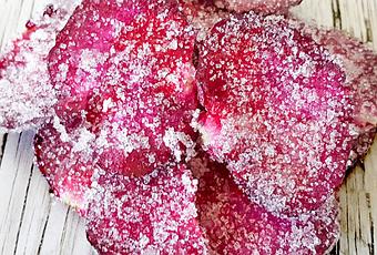 - Sacudimos cada pétalo con delicadeza para retirar el exceso de azúcar y los colocamos en una bandeja con papel de horneado.