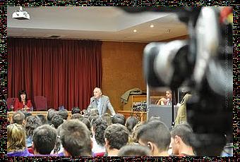 Puntualmente, a las once de la mañana Burke hacía su entrada en un abarrotado Salón de Grados de la Facultad de Comunicación de Sevilla, donde lo esperaban, sorprendentemente, estudiantes de primero de carrera (¿por simple curiosidad o quizá algún que otro profesor 'recomendó' la asistencia para un posible trabajo posterior?). Más sorprendente aún fue que estuvieran todos sentados y los alumnos del Máster y demás profesores permaneciéramos de pie (¿no era la conferencia inaugural de nuestro máster?).