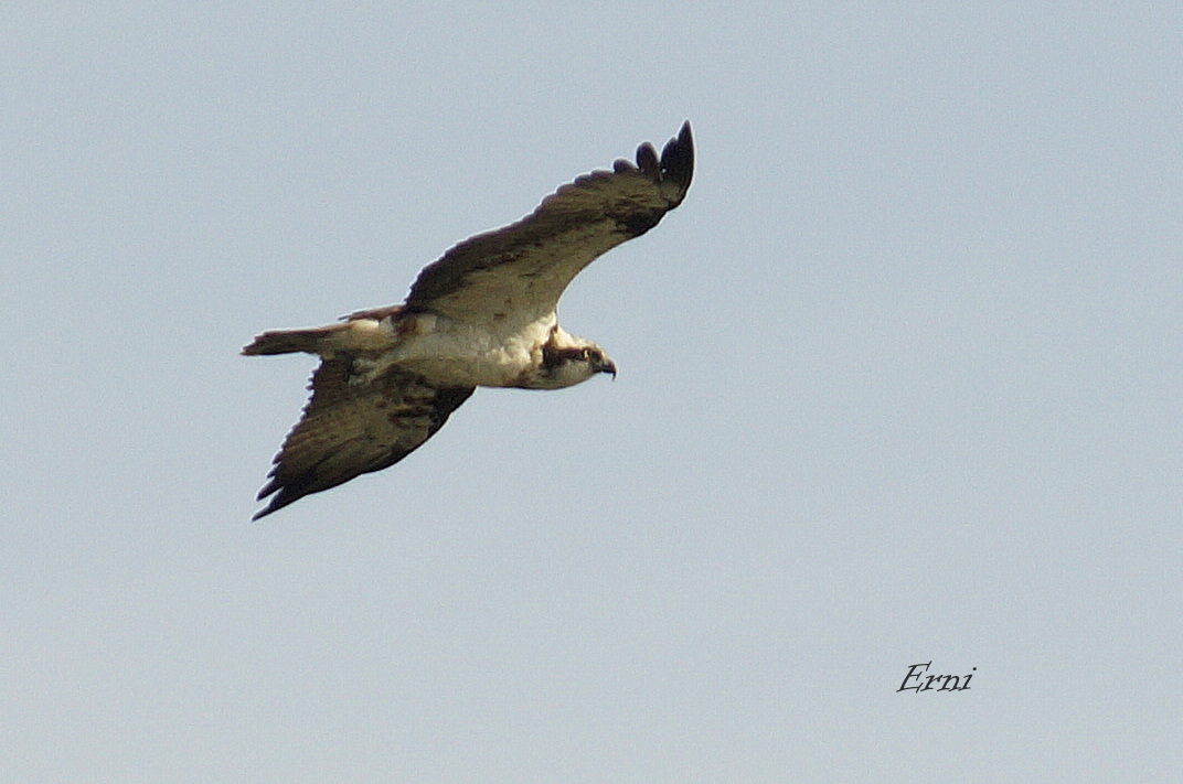 En las marismas de Santoña hay en estos momentos 2 ó 3 águilas pescadoras y una de ellas lleva una de sus patas mal plegada, probablemente dañada. Ojalá no le cause problemas a la hora de pescar.